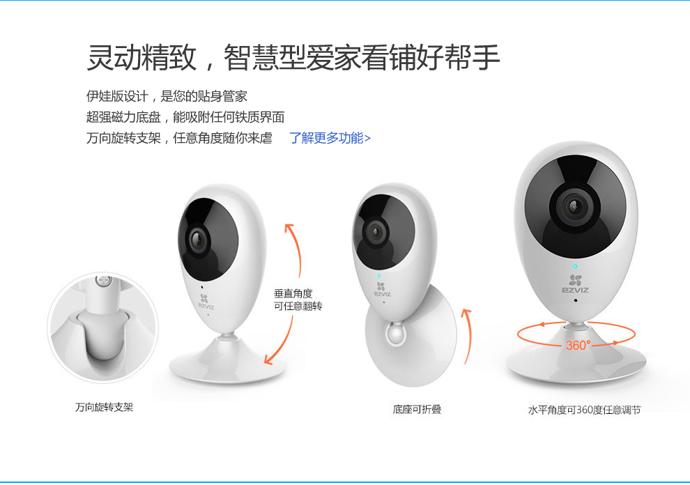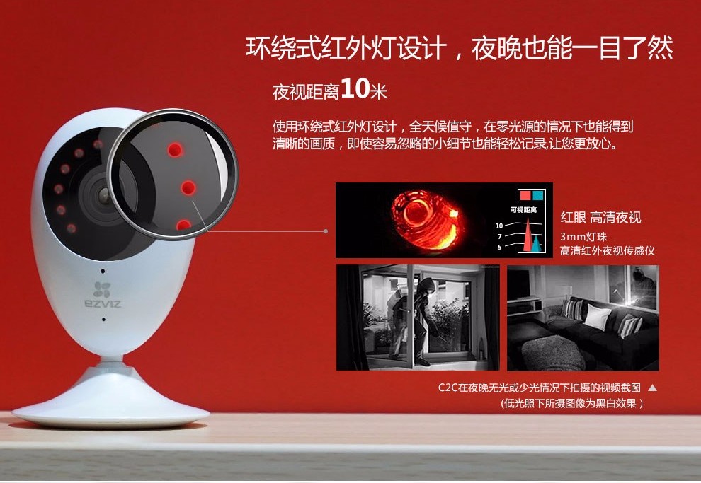 海康-螢石高清家用網(wǎng)絡(luò)攝像機(jī),200萬像素,1080P高清分辨率,畫質(zhì)清晰,成像效果一流;高清廣角視角,輕松覆蓋每個(gè)角落,;紅外高清夜視效果翻蓋范圍達(dá)10米,再也不用擔(dān)心夜晚看不清的尷尬。